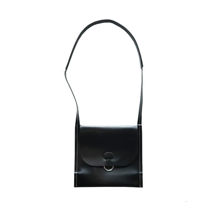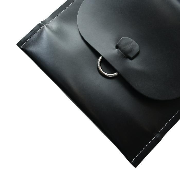 COMMENT 最小限の要素で構成されたシリーズで、一枚の革を折りたたんだ本体にホワイトステッチとリングがアクセントとして施されています。