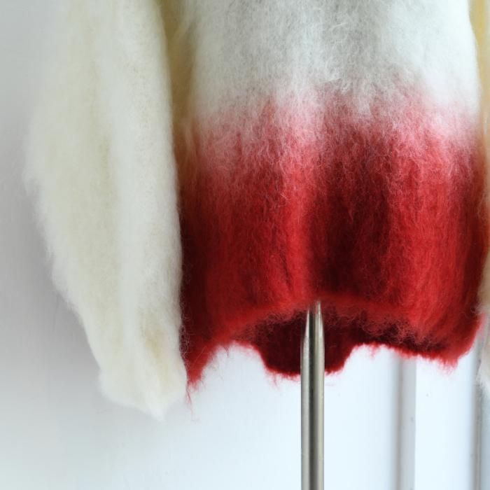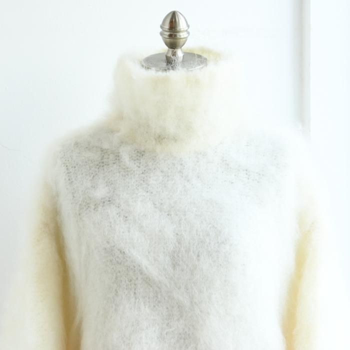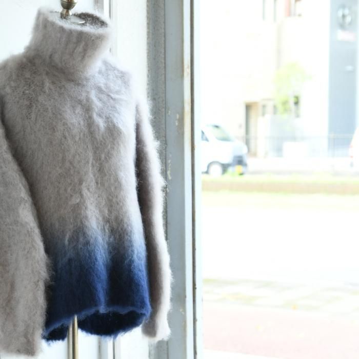 光沢感とハリのあるモヘア糸を使用し、丸みのある袖のフォルムと、フィット感のあるコンパクトな身頃が、デザインにメリハリを与えてくれます。
