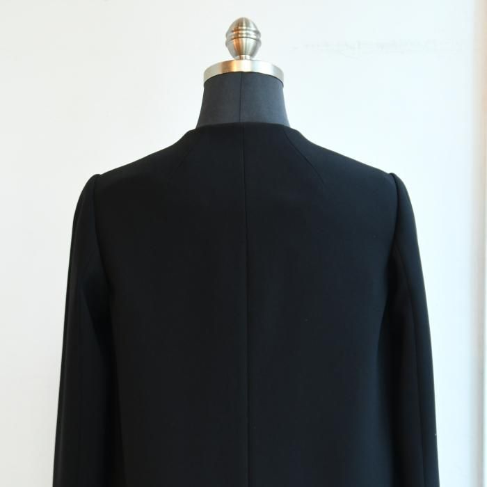 シルキーで滑らかなタッチと豊かな厚みが印象的な平二重組織の生地を採用したショートジャケット。 ストレッチ性を備えながらシワになりにくく、イージーケアを実現する機能素材が、日常使いにも最適な一着に仕上げている。 コンパクトな着丈と連なるくるみボタンがクラシカルなスタイルを実現。 胸下にダーツを入れることで、立体的なカッティングが身体を優しく包み込み、カジュアルになりすぎないエレガントさを兼ね備えたシーズンレスな1着。 【MATRIAL】表地 トリアセテート 70% ポリエステル 30% 裏地ポリエステル100% 【1】着丈:52.8cm 肩巾:37.2cm 袖丈:59.9cm バスト:94.0cm ウエスト:98.8cm裾:105.8cm 【2】着丈:54.0cm 肩巾:38.2cm 袖丈:60.9cm バスト:98.0cm ウエスト:102.8cm裾:109.8cm 【3】着丈:55.1cm 肩巾:39.2cm 袖丈:61.9cm バスト:102.cm ウエスト:106.8cm裾:113.8cm この商品の問い合わせ先 Filmvak:tel:0992956646 |